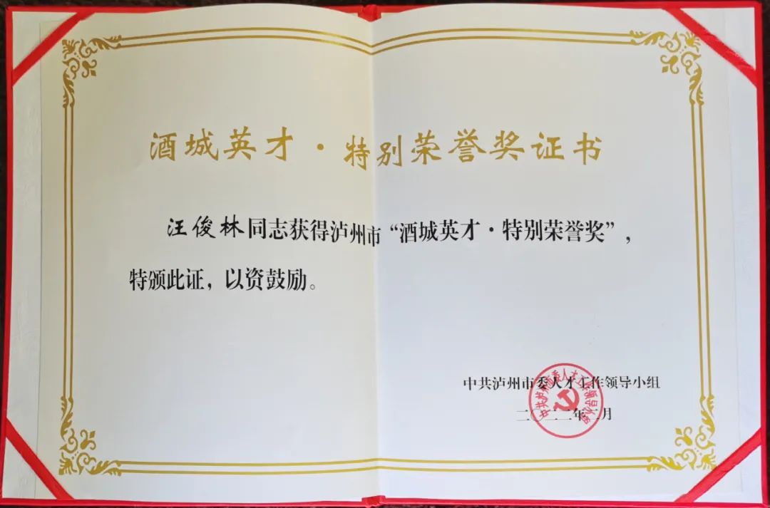 2月23日,泸州市召开市委人才工作会议,隆重表彰一批为泸州经济社会发展作出重大或突出贡献、在人才引进培育、发挥作用方面成效显著的单位和个人,四川郎酒股份有限公司荣获「泸州市人才先进工作单位」,郎酒集团董事长汪俊林荣获「酒城英才·特别荣誉奖」。