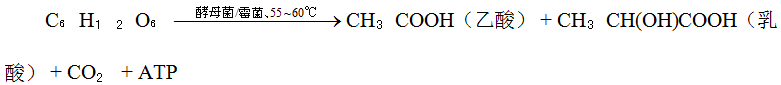 底物为葡萄糖,在酵母菌、霉菌代谢酶作用下生成有机酸,反应式: