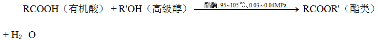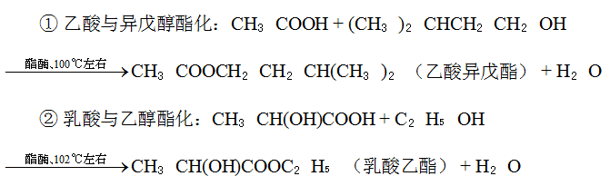 底物为高温堆积阶段生成的有机酸(乙酸、乳酸)与微生物代谢生成的高级醇(异戊醇、异丁醇),在糟醅中残留的酯酶催化下发生酯化反应,总反应式:
